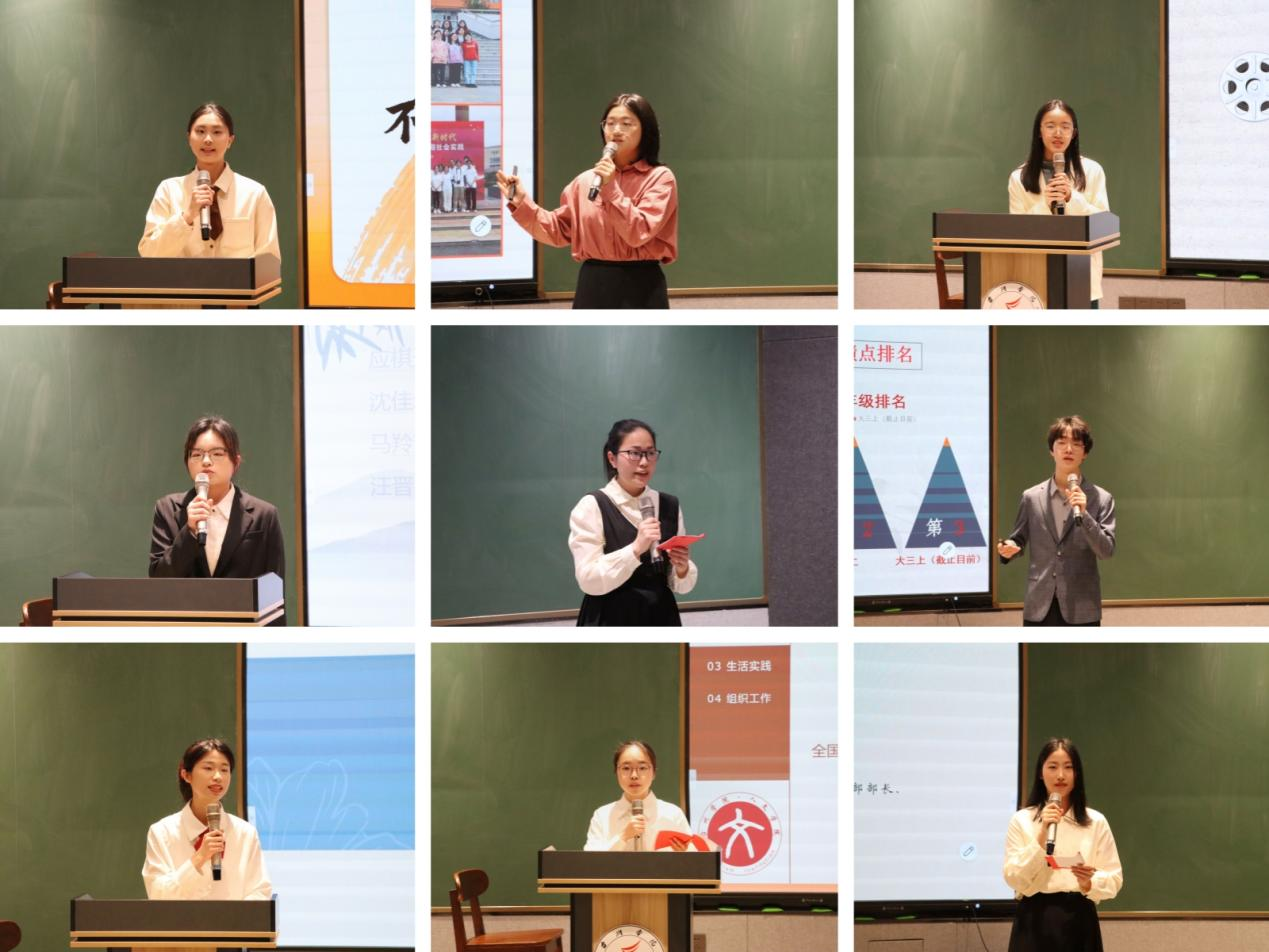 经个人自荐、班级推荐及学院初评后,共有19名来自各年级的优秀学生参与竞选。各候选人以饱满的精神面貌依次上台,通过幻灯片演讲的形式,充分展示了自己在学习、工作、实践等诸多方面取得的优异成绩,并传达出积极向上的生活态度与远大美好的理想信念。从他们慷慨激昂的演讲中,我们不仅能切身感受到当代青年的昂扬朝气,还能切实体会到人文学子的独特风采。