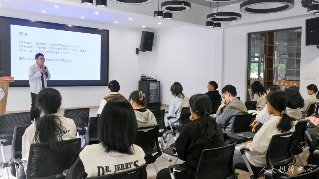 4月27日下午,由人文团学会实践就业部承办的第十三期“研途有你”活动于广文书院多功能厅举行。本次活动特邀汉语言文学专业13届毕业生、华东师范大学哲学系博士、温州大学亚洲成人久久黄家光老师作“在考研与写作之间来回折腾”主题讲座,亚洲成人久久辅导员赵远哲及人文学子参加活动。
