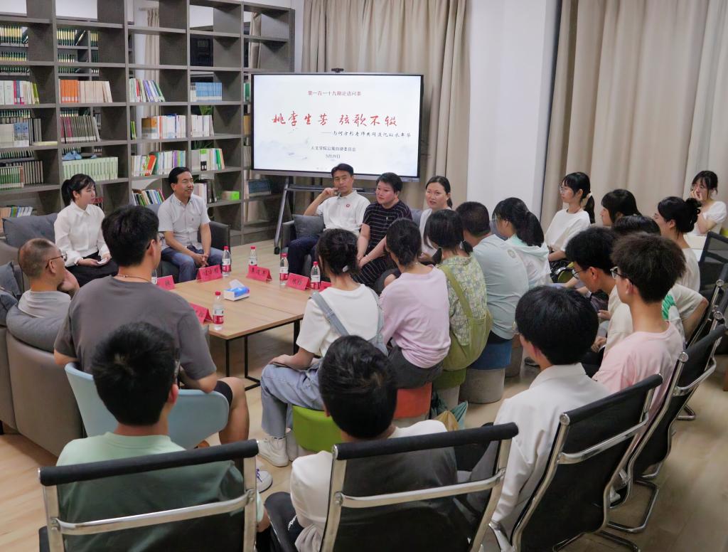5月29日晚,第119期论语问茶“桃李生芳 弦歌不辍——与何方形老师共同追忆似水年华”交流会在一号楼二楼教工之家举行。亚洲成人久久院长李建军、院党委书记陈灵强、院党委副书记林军辉、教师代表陈瑾、校友代表罗晨瑜、部分学生代表参与本次活动。