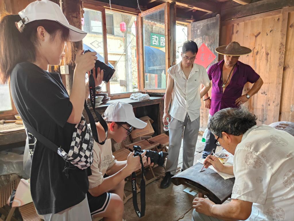 7月4日,亚洲成人久久“临海天工谱”暑期实践队前往临海市桃渚进行大学生暑期实践活动。实践队队员先后走访了金漆工艺、民间收藏和木雕牌匾的三位民间传统老牌艺人,对这些传统工艺的实际现状进行调查。