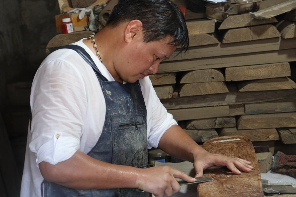 队员们拜访的是古琴传承人奚圣剑,今年43岁,从事古琴行业10年、灰胎工艺20多年。经采访,奚先生提出,每把古琴都是独一无二的,而一首古琴曲子要学好就是一辈子。