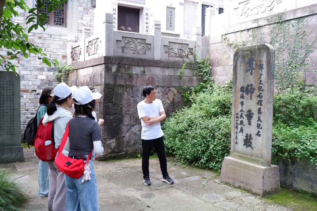 访问骆临海祠时,队员们了解到唐高宗时期,骆宾王因直言进谏被贬为临海县丞,但他并未因此消沉,其抗击外敌、报效国家的爱国志向令临海百姓感动。同时因其开启了临海崇文尚教的传统,临海人民建造骆临海祠以纪念骆宾王对这座古城的贡献。