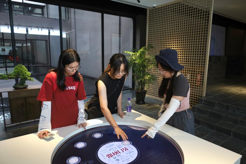 8月20日下午,实践队队员先后走访了诗路文化体验馆与骆临海祠。诗路文化体验馆依托史料,挖掘与临海相关的诗歌和图像资料,借助台州府城文旅平台,融合造景与 MGC(机器自动生成)技术,对近百万首诗词进行结构化处理,通过多维互联的关系,深入探索诗歌内涵。队员们通过精美的视频讲解,富有趣味的互动性装置感受到府城多元包容、崇文厚德的诗路文化气象,进一步认知到数字化技术对还原历史情景、增强游客沉浸式体验的重要作用,对诗路溯源优化设计产生新的思考。