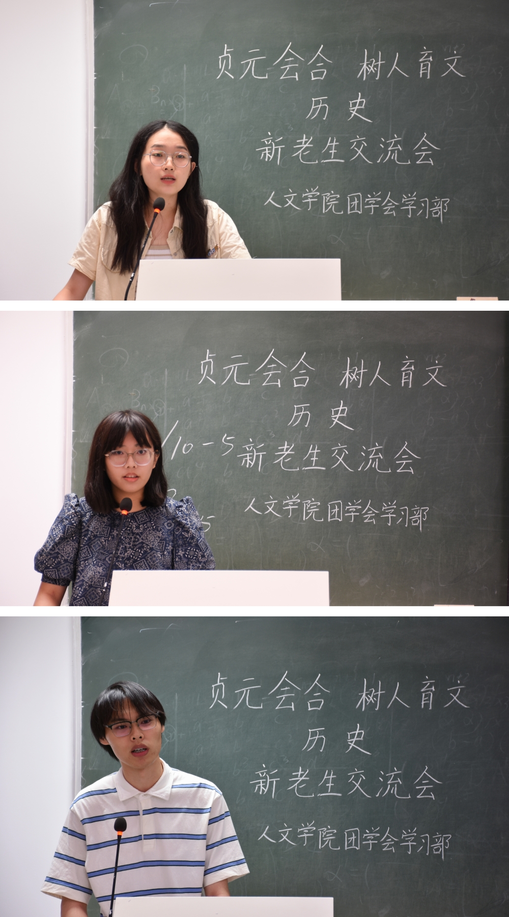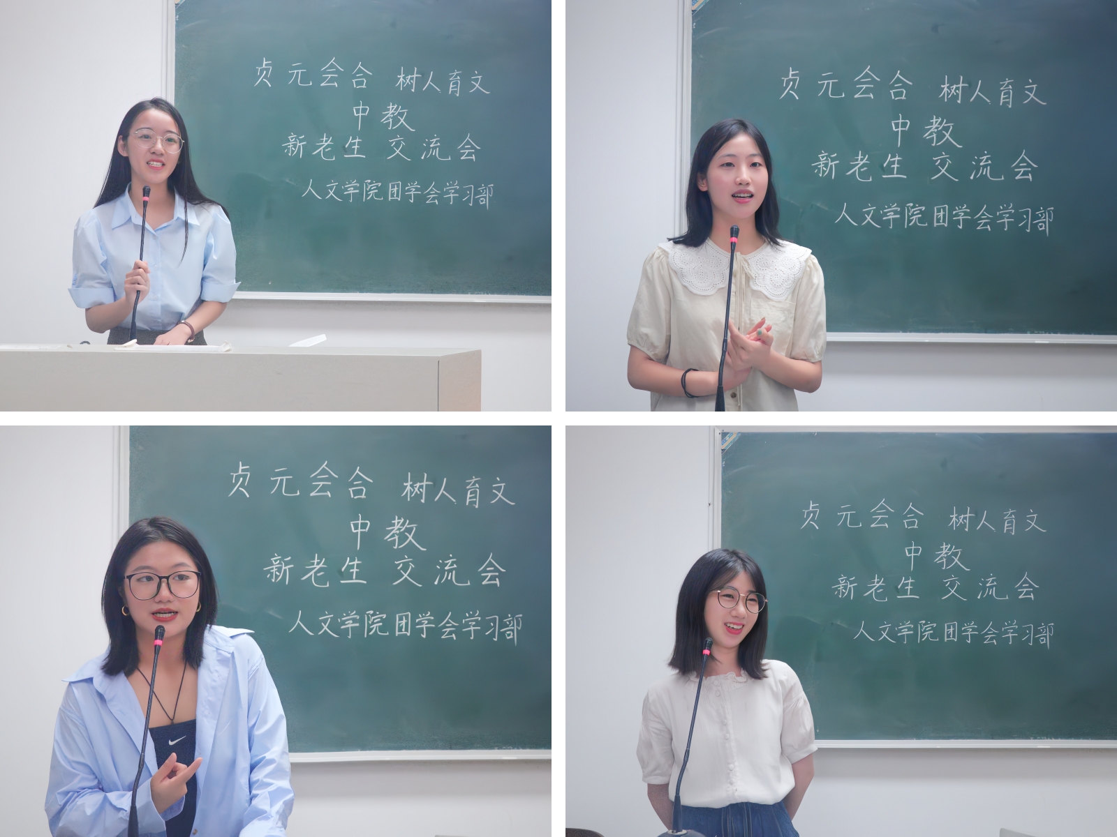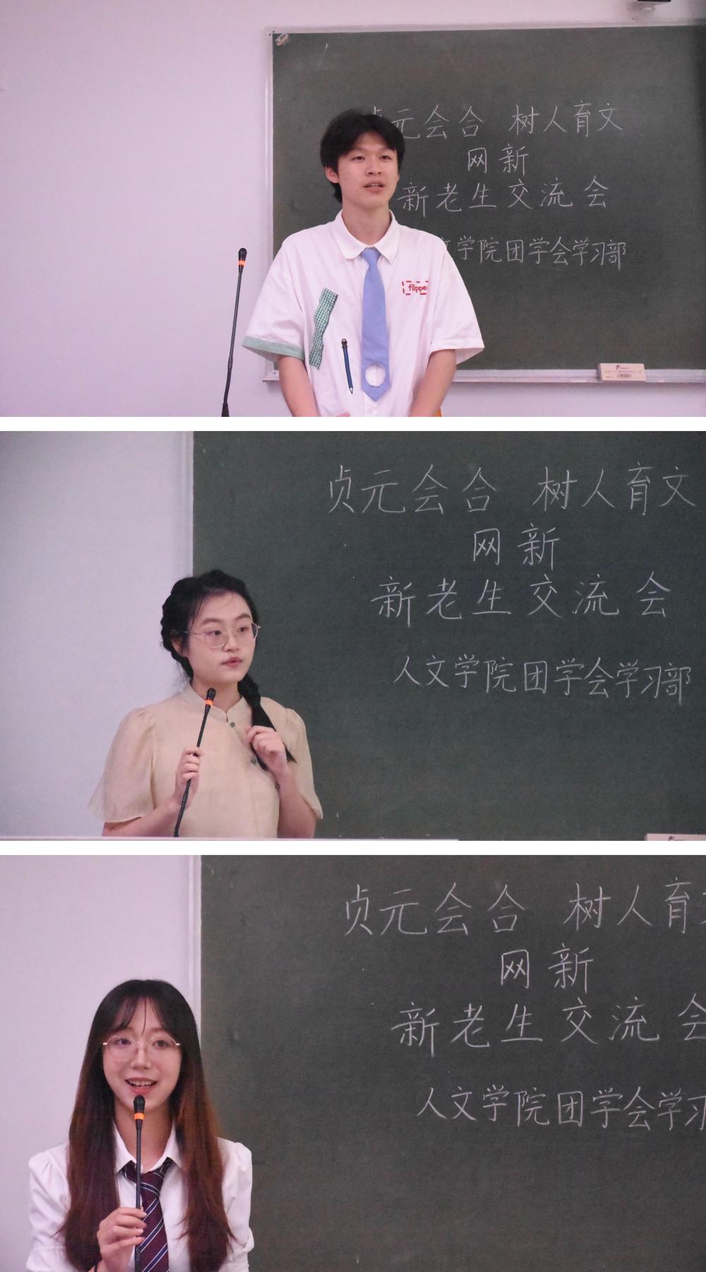 9月20日及9月22日晚,亚洲成人久久在2101、1209、1210和1310四个教室分别举办了中教、网新、中文和历史四个专业的新老生交流会。中教专业代表张潇颖、王江婵媛、梁安慧、张心悦,网新专业代表郑张博、赵静娴、樊晨茜,中文专业代表熊佳悦、陈韵、武子瑜、沈谢杰,历史专业代表褚骁阳、杨子吟、王可儿应邀到场,部分23级同学参加此次交流会。