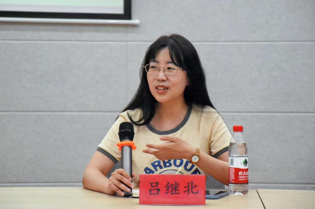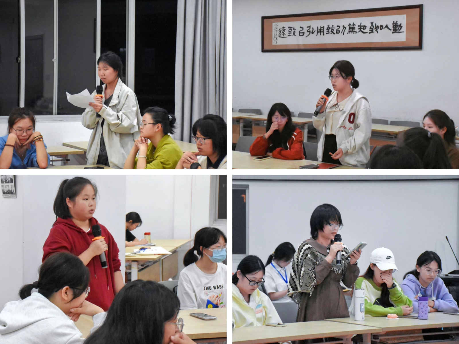 在教师分析环节中,吕继北以李白的《将进酒》为例,对“君不见黄河之水天上来,奔流到海不复回”做了具体解读。她指出,当时社会对功名的渴望导致了社会上各个领域的发展失衡,因此她希望大家能在各个领域均衡发展,不要因为自己与常人有异而受挫。徐樵楚则认为诗要与其历史背景相结合,要从诗中找寻作者所处的历史特点,了解历史才能与作者产生共情,才能更好地把诗的内容传递给别人。最后他以一句“读万卷书,行万里路”勉励大家多读书。
