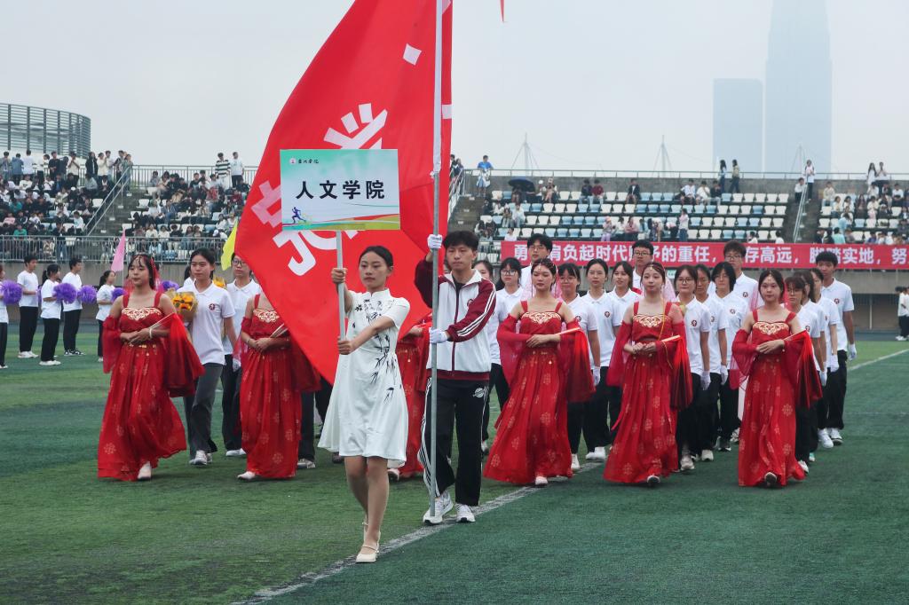 在开幕式上,亚洲成人久久运动方阵首个入场。人文学子穿着精致的汉服,轻摇羽扇,款款而来,用轻灵的脚尖和婀娜的舞姿展现了人文风采和文化底蕴。“修德立人,砺学至文”的院训传达了人文的品格和内涵。浮舟沧海,立马昆仑,是人文学子超越自我、不负众望的期许。