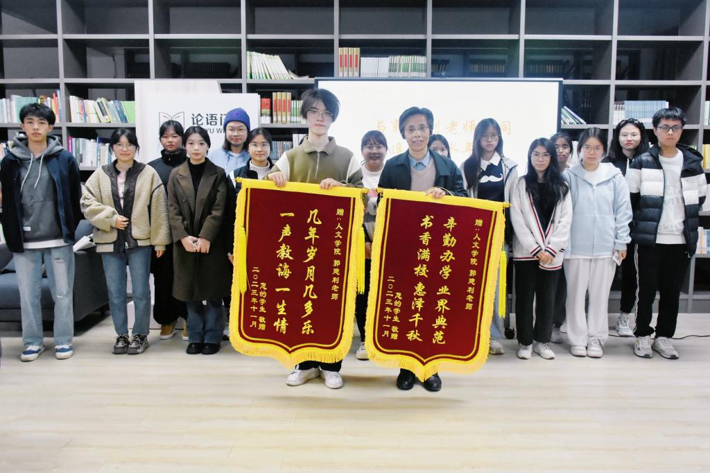 在总结发言环节中,李建军从为人、治学、育人三方面,高度称赞郭老师“谦谦君子,温润如玉;渊渊学者,文质彬彬;悠悠师者,育人有方”。陈灵强建议,同学们要培养能说、会写、善思等专业能力,并学习郭老师从容、淡定、淡泊的心境,在浮躁的时代要保持善良和坚定。