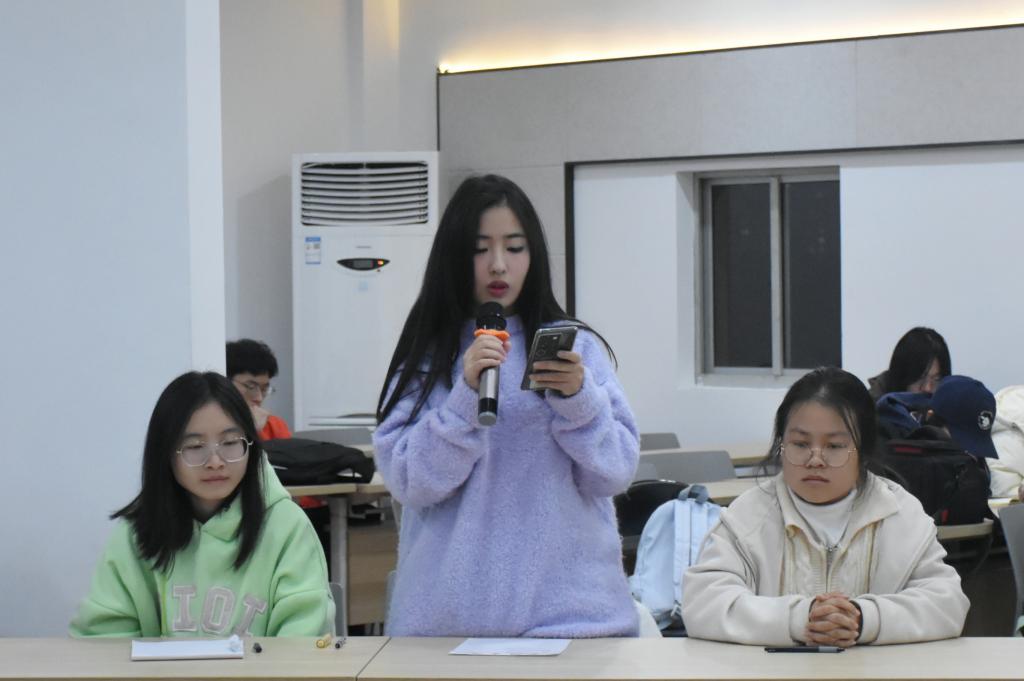 在话题分享环节,活动开始前,同学们根据纪录片中的不同人生阶段,划分为四个小组:出生组、上学组、婚姻组、养老组。出生组从人口呈现负增长的社会现象出发,通过纪录片中准母亲向爽的经历体会到产妇的不易;上学组围绕“在繁重的作业与固化的教育方式中,我们如何自洽”的问题,揭示了教育模式的形成离不开本国文化的土壤的现象,强调了应试教育的不可或缺与科学性;婚姻组从历史背景、经济因素以及个人情感多角度探讨婚姻认识,分享了当代青年的婚姻观,强调了婚姻的重要性;养老组打破常规对老年阶段的悲观态度,强调老年时期的漫长与富于变化,呼吁重视老年群体与养老问题。随后,活动中设置了转盘大挑战,通过击鼓传花的游戏,同学们分述了自己对于人生不同问题的看法,如通过运动与听歌缓解压力,考上一个好大学是成功人生的第一件事等。