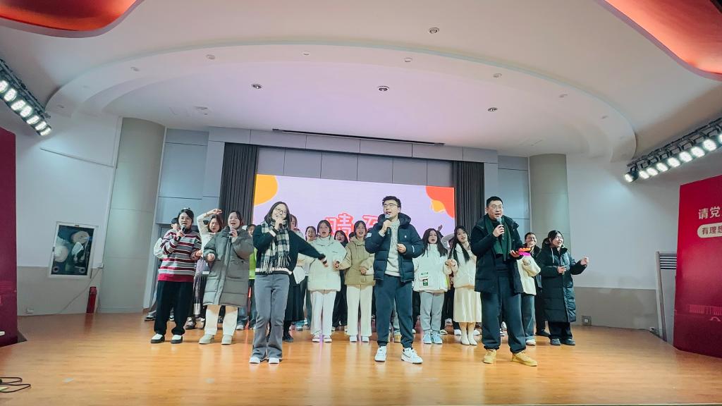 辅导员杨盛、徐樵楚、鹿宵宵为大家带来歌曲《晴天》,希望同学们有一段精彩难忘的大学时光。