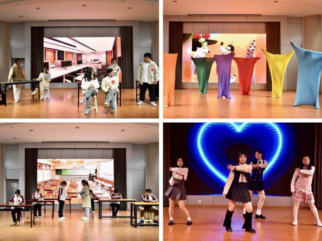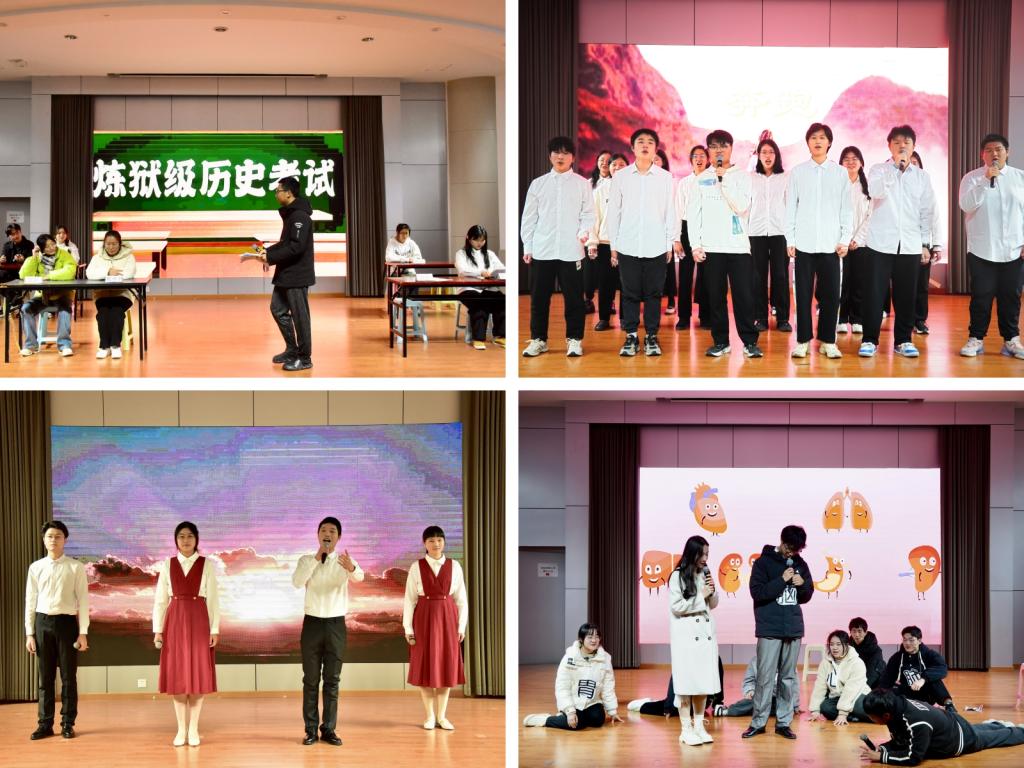 晚会在班主任寄语视频后正式拉开了序幕。开场舞《跃动青春》以活泼的青春舞姿点燃全场。小品《打铁还需自身硬》以历史考试为背景,生动演绎“作弊不可取,打铁还需自身硬”的道理。风雅诵读社带来诗歌朗诵《光的赞歌》,抒发了对光的热烈向往与追求。串烧表演《舞吧,日不落》以耳熟能详的经典曲目与炫酷的舞姿为同学们带来歌舞盛宴。在小品《上学那些事儿》中,同学们灵活演绎教室里的喜怒哀乐与日常生活百态。串烧表演《青春无憾》以温柔灵动的嗓音与活力四射的舞蹈让人耳目一新。小品《非诚勿扰》幽默演绎大学恋爱趣闻,传达出“在风华正茂的年纪好好爱自己”的道理。舞蹈《舞动青春》以可爱的装束和舞蹈,点亮了同学们的笑脸。