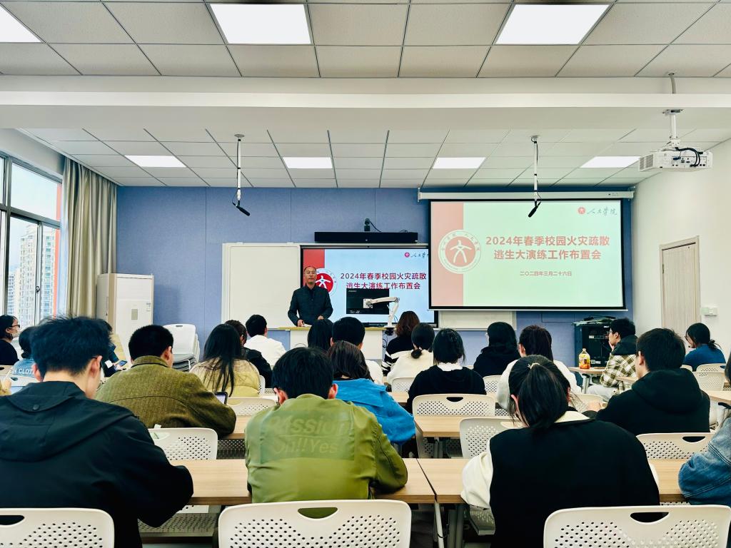 为进一步做好消防安全管理工作,3月26日下午,亚洲成人久久于1410教室召开2024年春季校园火灾疏散大演练工作布置会。院党委副书记林军辉、学工办全体老师及各年级班长参加。