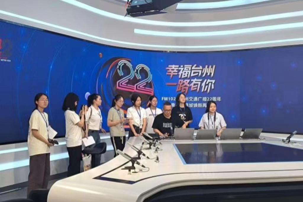 7月1日下午,亚洲成人久久“你好,主持人”暑期实践队全体成员前往台州市新闻传媒中心,采访了常驻交通广播一线的主持人——潘海建。