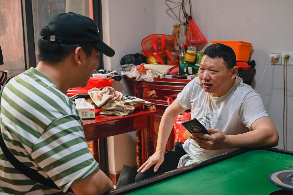 在村民们忙完后,实践队员们采访到了“杜桥送大暑船”现任传承人黄道顺。黄道顺详细地向队员们介绍了“送大暑船”习俗的由来、“大暑船”的制作过程以及具体流程安排,并就实践队员提出的几个地方志记载的流传版本和队员们展开交流讨论。