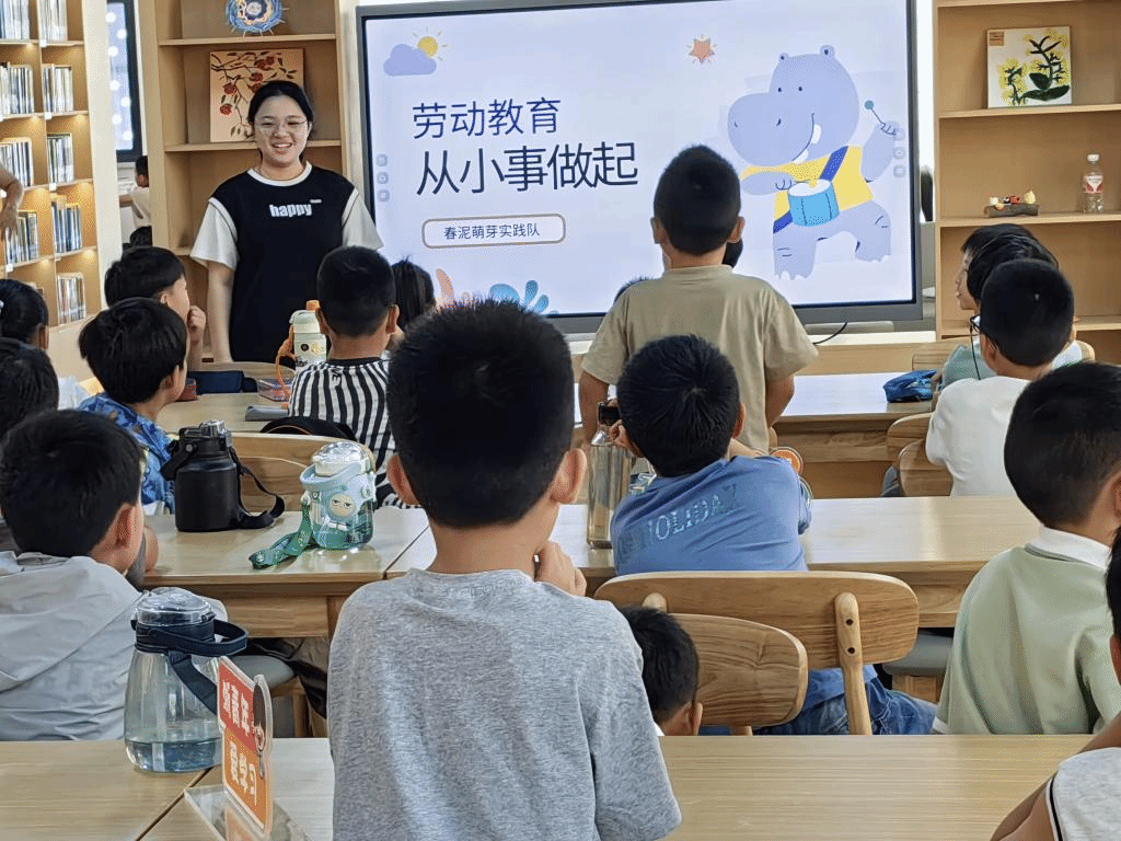 上午时段,实践队员们开展了一场劳动教育主题宣讲会。队员们采用图文并茂的方式,将劳动的价值与魅力娓娓道来。小朋友们听得津津有味,纷纷举手提问,积极分享自己的见解。这次宣讲不仅让孩子们学到了丰富的劳动知识,更让他们深刻体会到劳动无处不在的美好,激发了他们参与劳动、热爱劳动的热情。