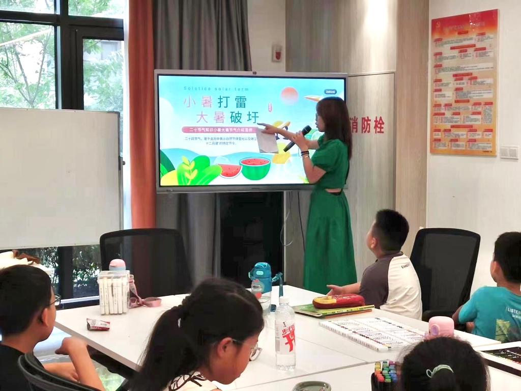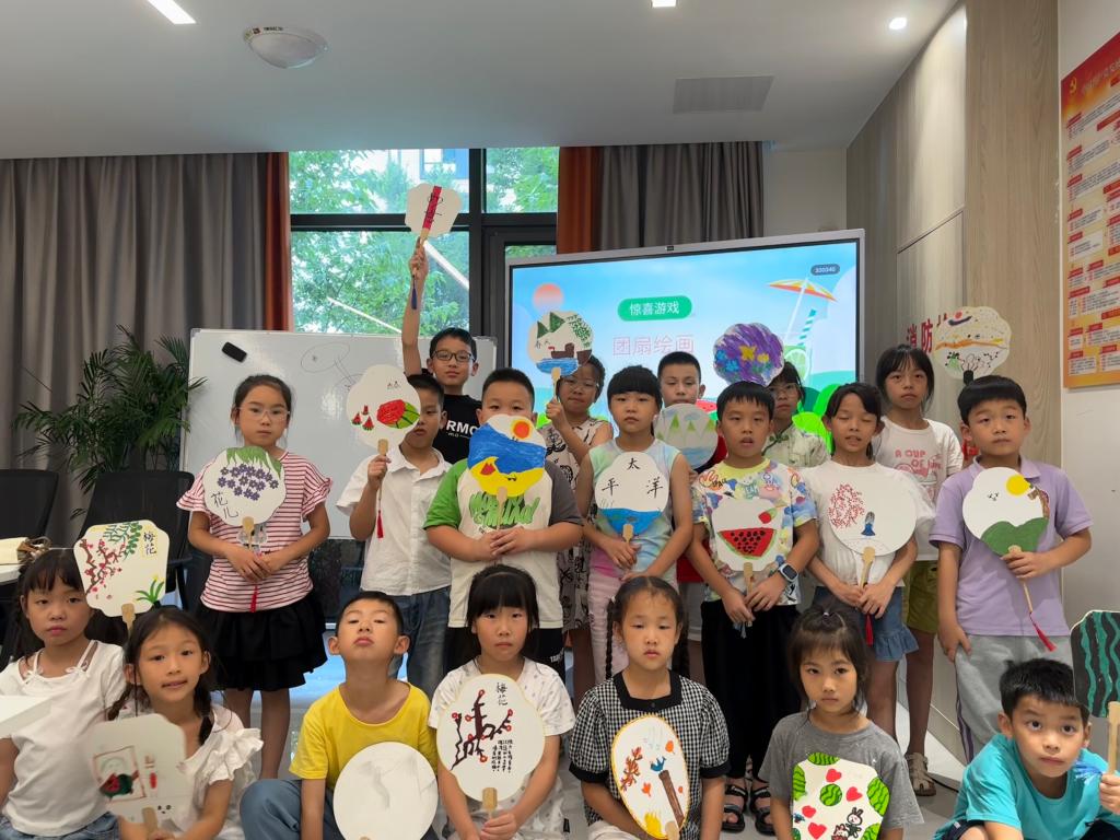 7月9日的安全课堂中,在实践队成员张以彤授课过后,鼓励孩子们动手完成安全拼贴画;7月10日的科学课堂中,实践队成员陆健梅带领孩子们走进了云朵的世界,拓宽了他们的视野,发挥了创造力;7月11日的节气课堂中,实践队成员厉彦彤着重选取了大暑小暑部分,借此引导孩子们绘制团扇,感受节气氛围。