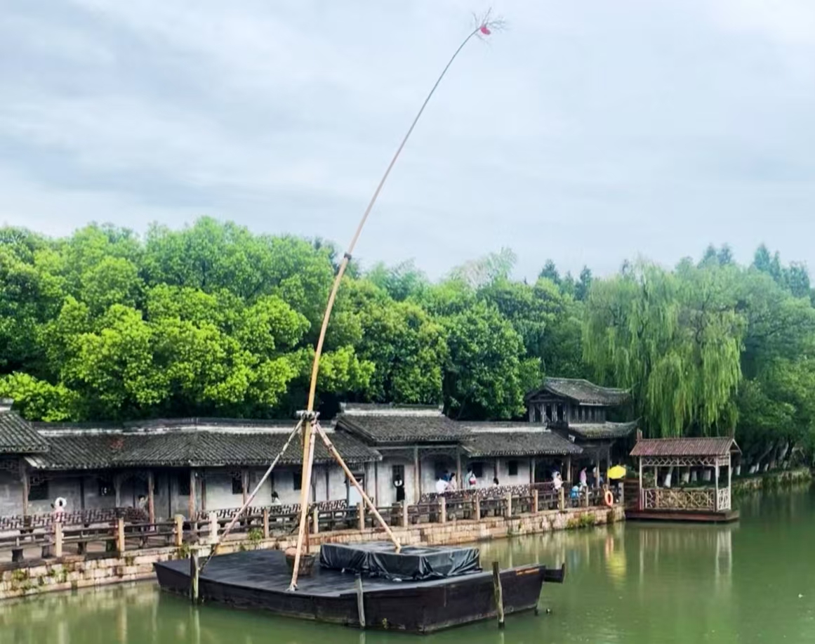 作为第三批国家级非物质文化遗产之一,高杆船杂技源于明末清初,距今已有百年历史。高杆船是该项技艺的表演场所。船上设有一支较长的带梢毛竹,其以石臼作基,三杆为撑,与表演者的高超技艺相伴,共同呈现了高杆船技“船在河中行、杆在船上立、人在杆上翻”独特的表演形式,吸引众多游客,于惊险刺激的演出之中尽显当地水乡、蚕乡之特色。