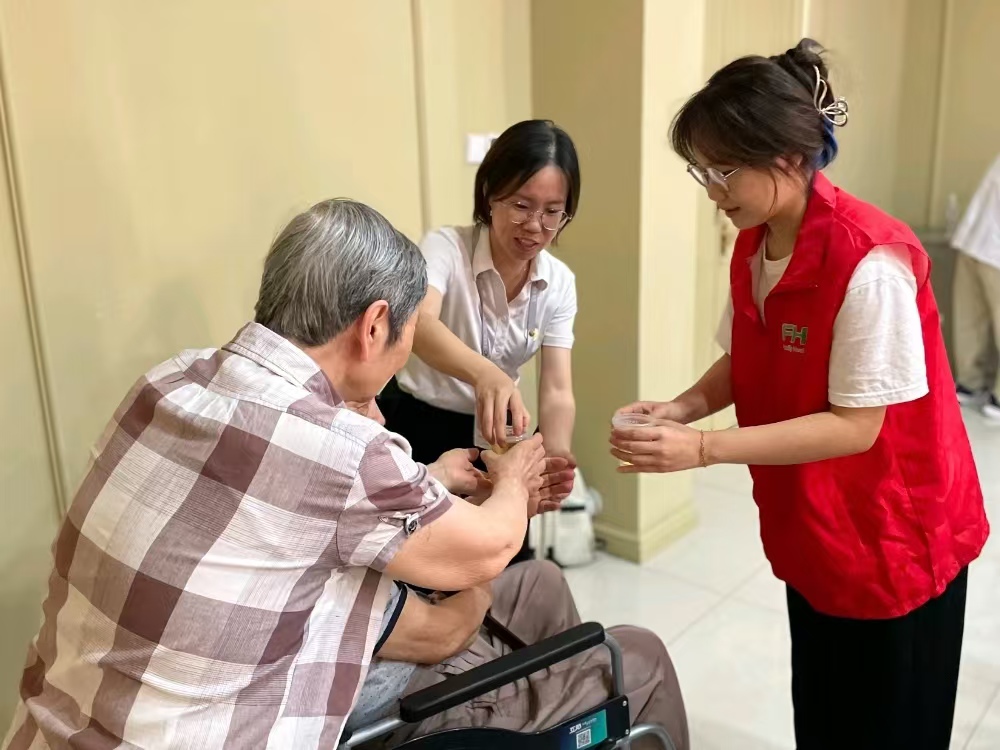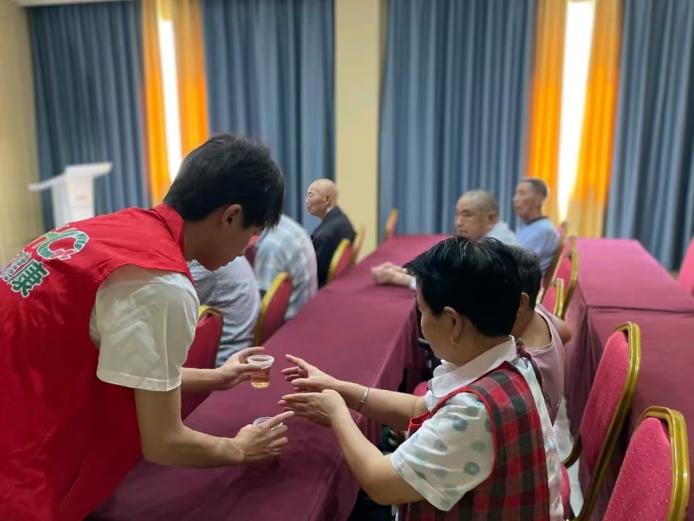最后,团队成员将先前熬制好的夏日养生茶分发给在场的老年人。他们在品尝这些茶饮的同时,不仅享受到了味蕾上的愉悦,更体会到了中医养生带来的身心放松和舒适。