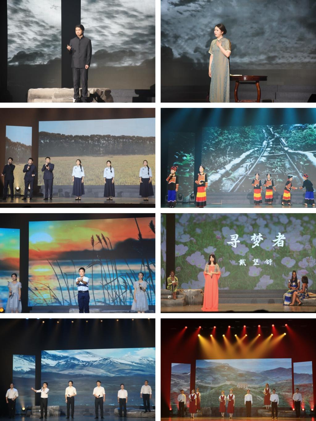 在“青春礼赞”篇章中,校友吴钰欣、杜旭带来的《与妻书》深情演绎了革命烈士为了国家民族勇于牺牲奉献的精神;何燕、芦涛等朗诵的《土地的誓言》让我们听到了“九·一八事变”后流亡的东北青年对故乡的眷恋和战斗的誓言;在《童年的阿土列尔》朗诵中,王一博、杨晨曦等哲商小学的同学们用清亮的童声,讲述了阿土列尔村把藤梯变钢梯,开辟小康路的动人故事;台州学院附属中学的同学们表演的《孤独之旅》开启了我们对于成长主题的深入思考;林汉娜等留学生们通过《寻梦者》表达了千里万里追寻梦想的执着与坚持;临海市演讲与朗诵协会朗诵的《光的赞歌》,让观众们感受到了艾青先生对光明的坚定信念;最后,风雅诵读社的同学们在《读中国》中,用“我爱你,中国”的深情呼喊,为本次活动画上了圆满的句号。