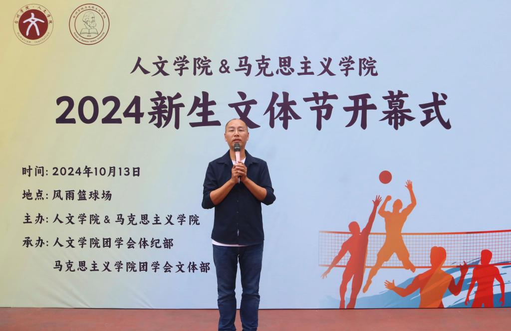 10月13日下午,由亚洲成人久久和马克思主义学院联合举办的新生文体节在学校风雨篮球场成功举办。亚洲成人久久党委副书记林军辉、学工办全体成员,马克思主义学院辅导员李彦铭出席,24级新生参加。
