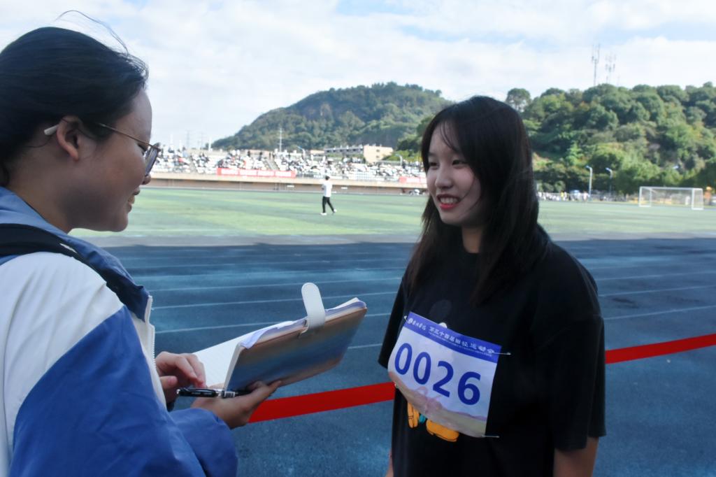 秋风送爽,丹桂飘香。台州学院迎来了第34届田径运动会。在缕缕秋风的吹拂下,亚洲成人久久记者有幸采访到了两名优秀运动员——荣获女子组铅球决赛冠军的吴江楠和女子组100米决赛第四名的刘婧。