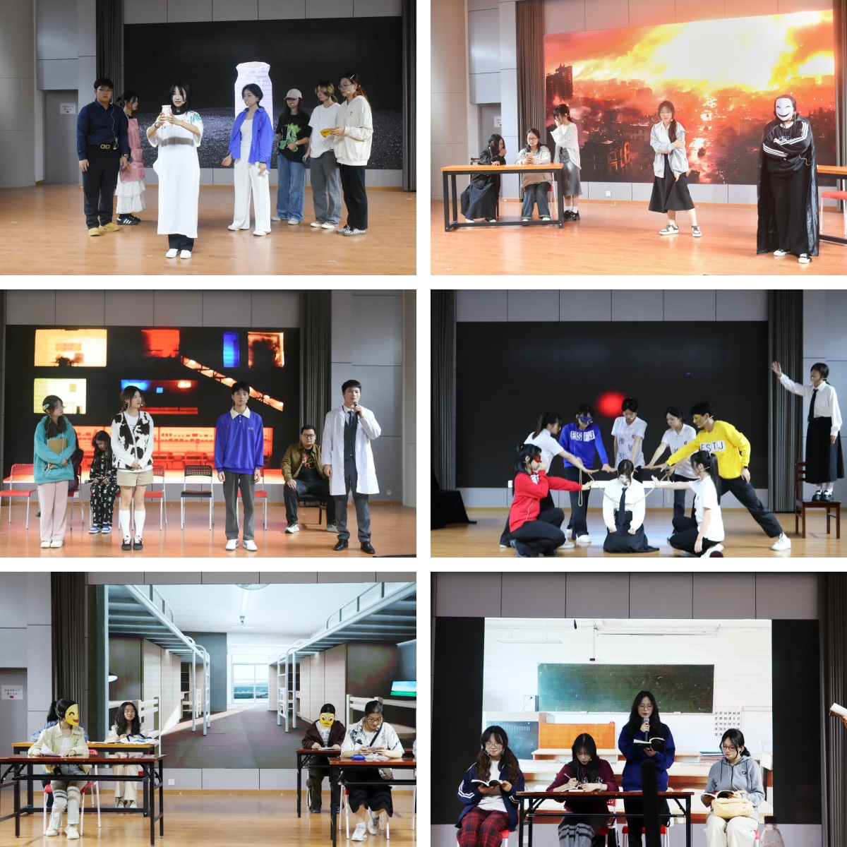 演绎他人故事,促进自我成长。本次心理剧大赛的九支参赛队伍以笔为刃,以剧为镜,真实展现了大学生面临的心理冲突或困境,深入剖析了大学生迷茫的内心世界。从梦想与现实的激烈碰撞,到闲言碎语和内心追求的针锋相对;从深处的自卑与恐惧,到抛弃讨好型人格后的愉悦与新生,别出心裁的表现形式让观众沉浸其中。经过激烈角逐,《七个暗室小孩》和《人格训练营》获得一等奖,《作品》《选择》《面具》获得二等奖,《战争年代》《我与我周旋久》《我不要你觉得》《我的未来不是梦》获得三等奖。
