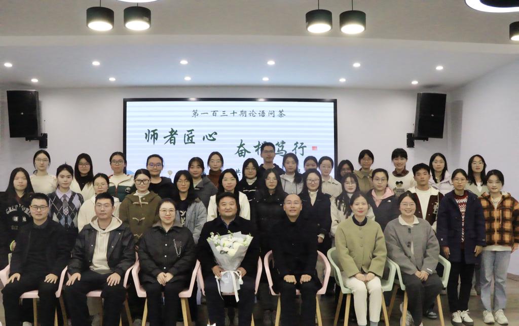 11月27日晚,亚洲成人久久在临海校区广文书院一楼多功能厅举办以“师者匠心,奋楫笃行——与高平老师共品往昔教育芳华”为主题的第130期论语问茶活动。校人文社科处处长、2022级中教三台班班主任高平,院党委副书记林军辉、副院长娄欣星及全体学工办老师参加,2014届中教专业优秀学子王巍、2022级中教三台班全体成员及部分2023级学生参与活动。