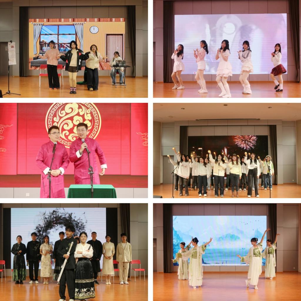 晚会以热情洋溢的开场舞《passion》拉开序幕,文娱部的同学们用灵动的身姿诠释了青春的激情与活力。紧接着,歌曲《慢慢喜欢你》以悠扬的旋律传递出温暖的情感。相声《大学生》生动地展现了大学生活的百态,引得观众忍俊不禁。歌舞表演《再聚公寓》充分绽放了青春的活力与朝气。文渊汉学社带来的舞蹈《予君书》如梦如幻,美轮美奂。光影剧《我的大学》则记录了珍贵的校园时光,唤起了观众的共鸣。流行舞蹈《touch》更是将青春的活力与热情释放得淋漓尽致。游戏环节“飞花令”以及徐樵楚、杨盛两位老师带来的相声《莽撞人》更是将现场气氛推向了高潮。
