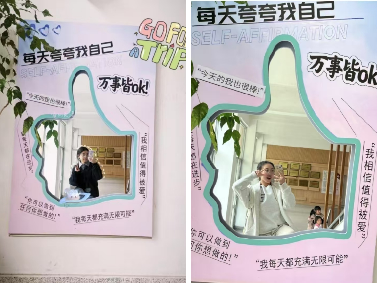 同学们在夸夸镜前打卡