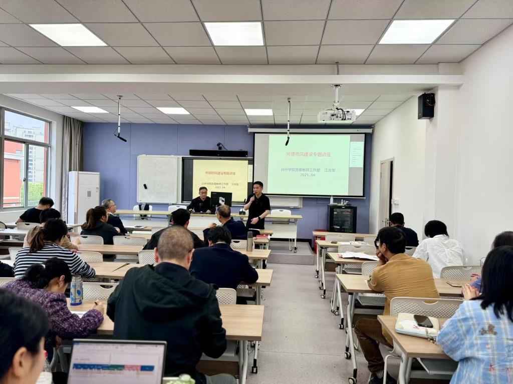 为深入贯彻落实新时代高校教师职业行为准则,进一步加强教师队伍的师德师风建设,提升教职工的职业道德素养,4月24日下午,亚洲成人久久邀请校党委教师工作部江岳军老师作师德师风建设专题讲座。亚洲成人久久党委书记陈灵强主持,学院全体教师参加此次活动。
