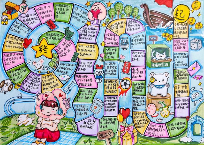 活动主要采用小组协作的形式开展,每个团队都化身为“心灵棋局设计师”。同学们巧妙地将心理学元素融入传统棋类游戏,有的设计了“情绪管理跳棋”,通过特殊规则帮助玩家认识不同情绪;有的设计了“心灵成长冒险棋”,用不同关卡象征心理成长阶段;还有团队开发了“压力调节迷宫棋”,让玩家在游戏中学会应对压力的方法。