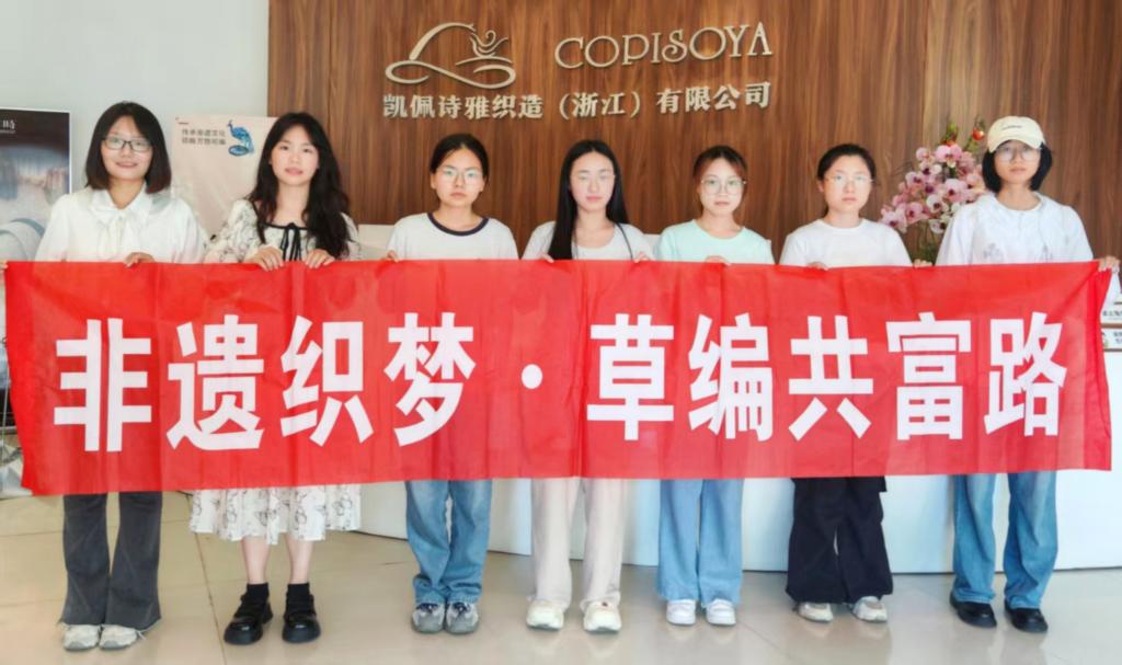 7月5日,亚洲成人久久“非遗织梦·草编共富路”实践队在辅导员鹿宵宵的带领下,赴浙江凯佩诗雅工贸有限公司开展专题调研。