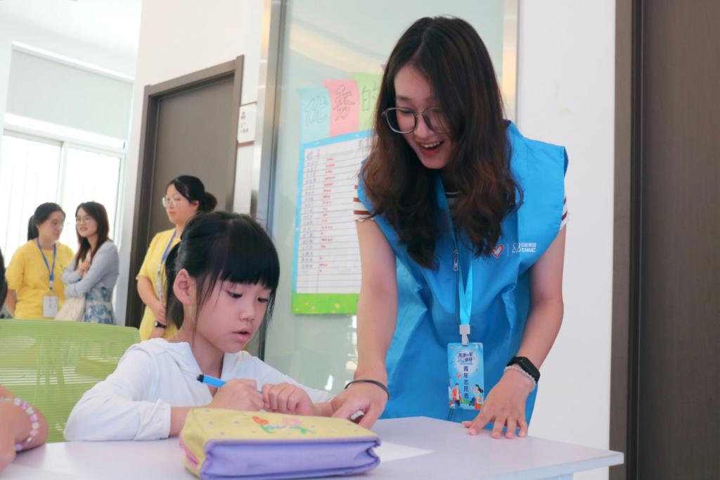 实践队员指导小朋友绘画
