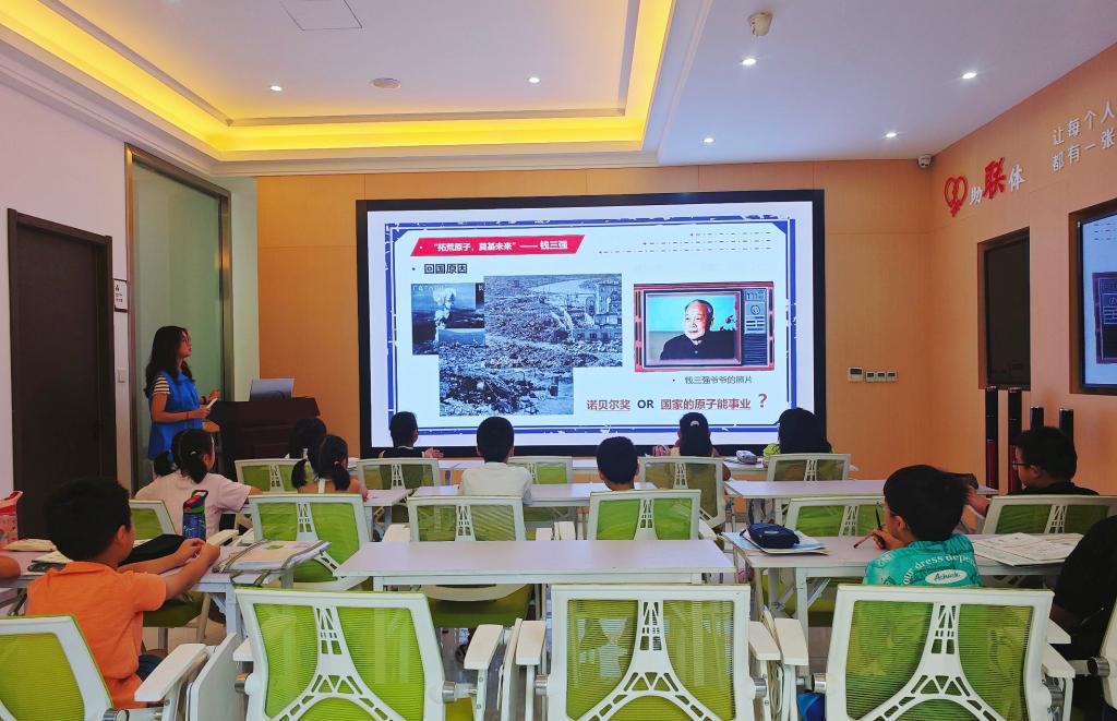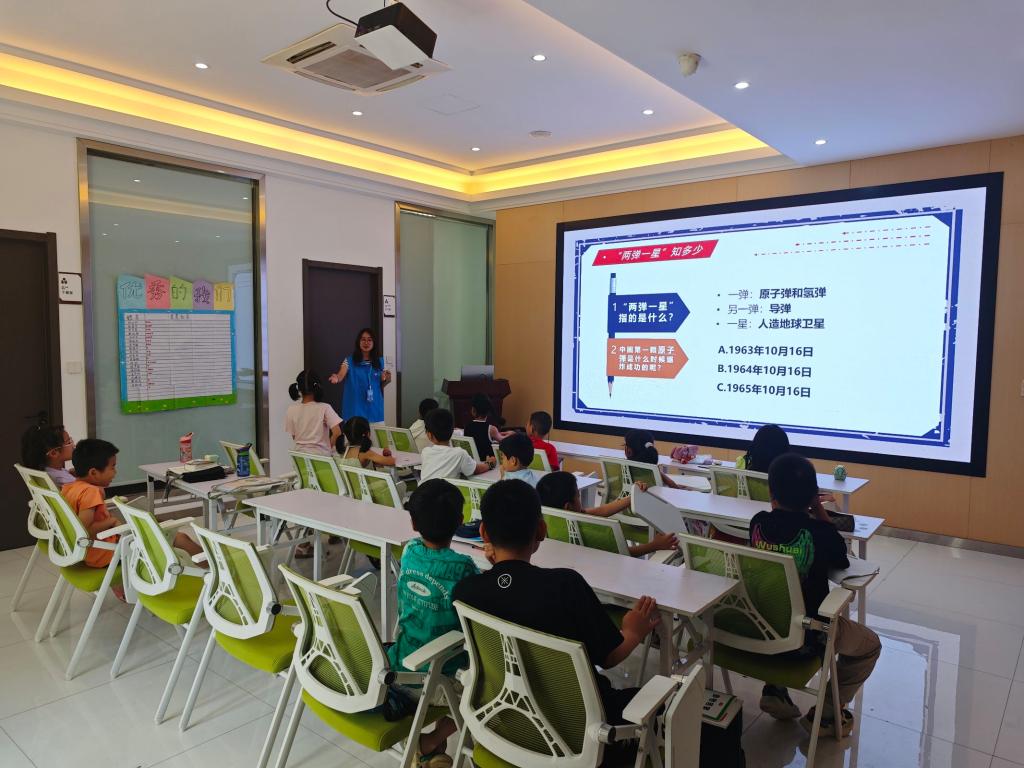 活动现场还设置了知识抢答环节,孩子们争先恐后举手回答。“中国第一颗原子弹爆炸是哪一年?”“1964年10月16日!”……清脆的回答声此起彼伏,展现了孩子们对科学知识的浓厚兴趣。