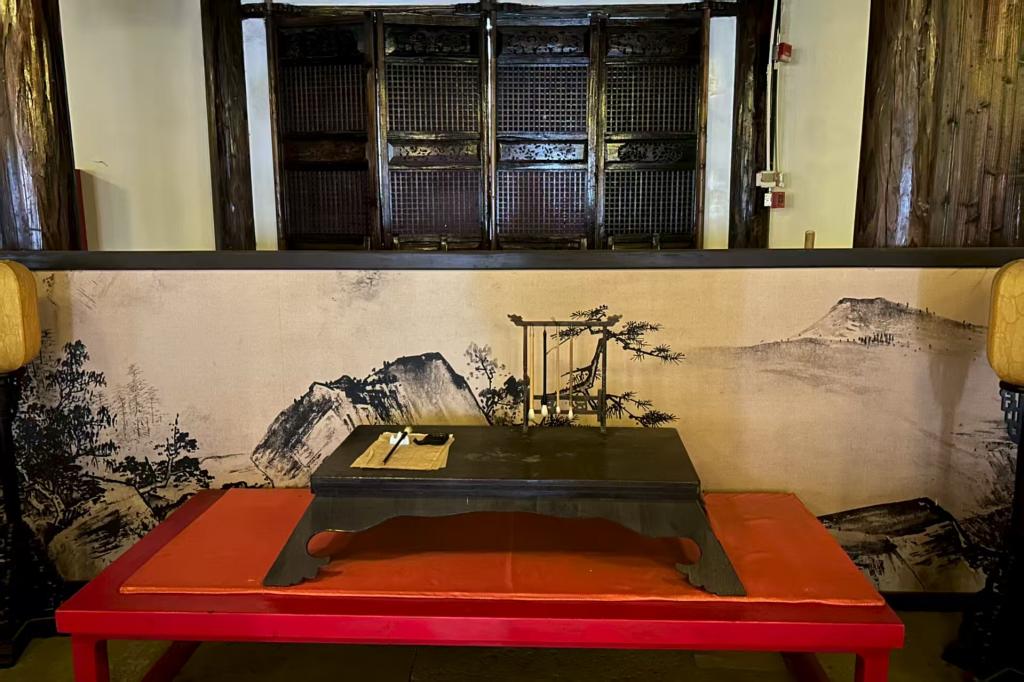 如今的状元第在文旅发展的带动下,成为了经典历史故事演绎的大众场所。坊内时有演出活动,能让游客了解文化历史的同时感受视听的双重享受。队员们穿过正厅,看见摆放整齐的书案和长椅。一身绣着蟒纹的状元红袍在展架上静静陈列。金线绣成的云纹在灯光下流转,虽非秦鸣雷当年的亲着状元袍,但透过丝线仿佛仍能看见当年的庄重。