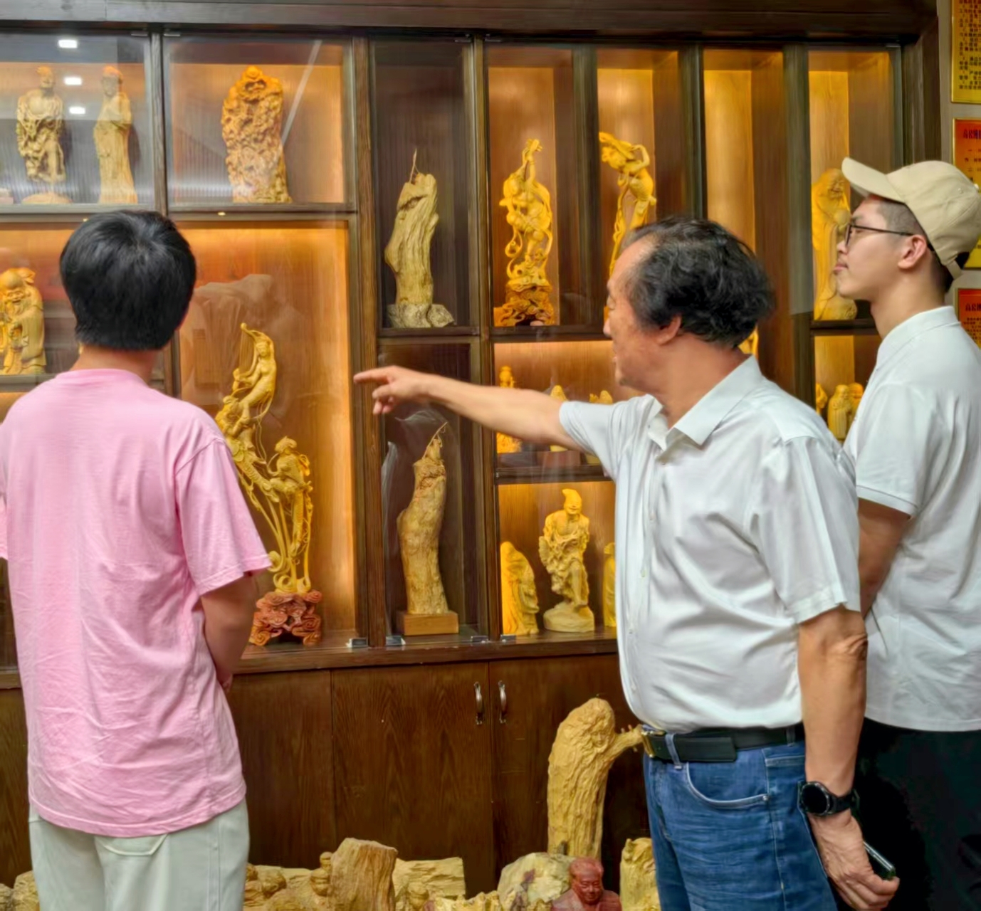 盛夏七月,台州学院亚洲成人久久“刻木铭心”暑期实践队在队长喻泓博和指导老师陈日红的带领下,踏访温州,循着黄杨木的幽香,开启一场以“传承与发展”为核心的深度调研之旅。实践队用田野考察和口述史访谈的形式,解码黄杨木雕这门古老技艺如何在刀锋与青春的交响中,迸发当代生命力。