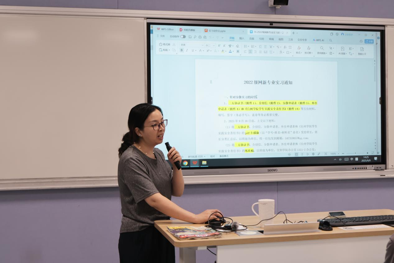 专业实习安排是实践顺利进行的保障。黄莉对专业实习安排的各种事项进行了详细梳理。针对集中实习,她指出学生需服从安排,通过指定平台进行每日签到、周记撰写等;针对分散实习学生,明确需提交三方协议书、介绍信、分散实习申请表等材料,要求同步上交电子稿与纸质稿。