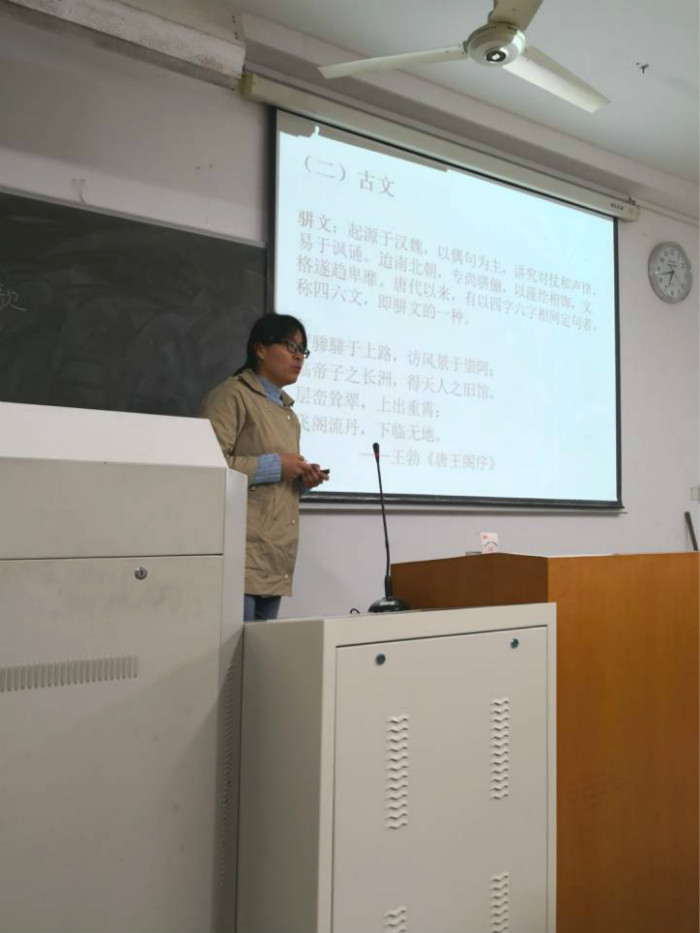 王宏芹博士与吕继北博士分别讲解了《唐代文学绪论》和《宋代文学绪论》中的一个片段,参会老师进行有针对性的点评,并提出了改进的建议。与会人员就人文学科的教学如何体现应用性、如何平衡教学与科研等多方面的问题展开热烈讨论。