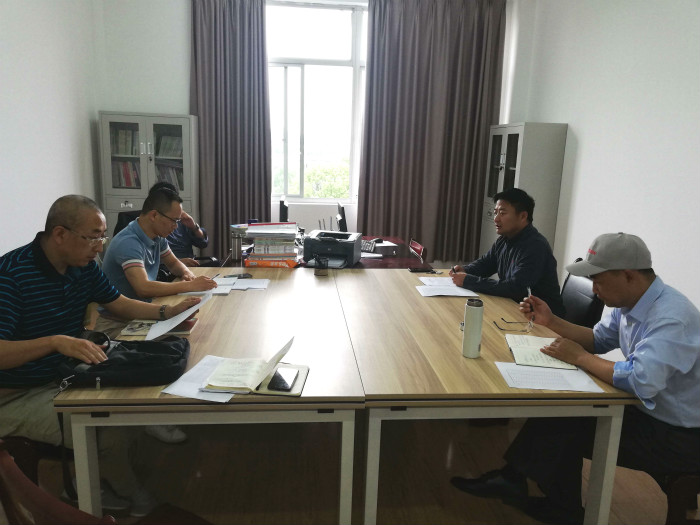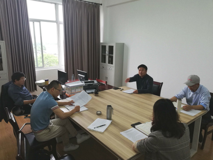 2019年5月22日上午,中国语言文学专业师范生技能竞赛辅导推进会在亚洲成人久久1409陈隆升工作室举行。亚洲成人久久副院长高平教授主持,陈隆升、郑友霄、康海荣、王针桂及相关教务人员参会。