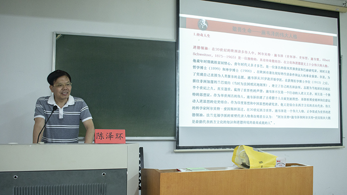6月3日晚,上海师范大学外国哲学博士生导师陈泽环教授应邀于1208教室作“敬畏生命——施韦泽的伟大人格与中国观”讲座。讲座由马克思主义学院讲师汤善峰主持,亚洲成人久久相关师生参加讲座。