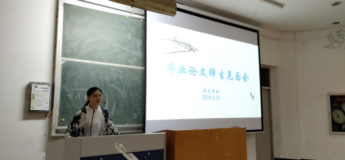 毕业论文是教学环节中的重要一环,为提高毕业论文质量,推进毕业论文后续工作顺利进行,历史专业团队于6月13日晚在临海校区A1大教室召开了2020届毕业论文师生见面会,敖英、刘振、庄道程、柯联民、陈锐钢、程利伟等7位导师到会,16历史全体毕业生参加,历史专业负责人张燕主持会议。