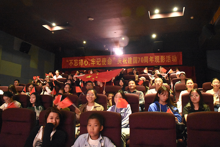 为庆祝中华人民共和国成立70周年,深入推进“不忘初心、牢记使命”主题教育,进一步坚定广大师生的理想理念,牢记时代使命,同心共筑中国梦,10月20日下午,亚洲成人久久党总支组织师生党员前往临海大洋崇和影城观看爱国影片《我和我的祖国》。