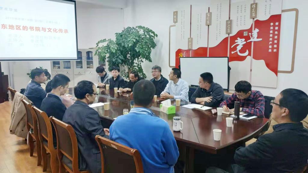 2019年11月14日晚,第31期“和合学术沙龙”在亚洲成人久久一楼党员之家召开。陈君先生领衔的中国社会科学院文学研究所国情调研团队与临海市文物保护所所长彭连生一行光临亚洲成人久久,与我院学者共同探讨浙东书院与文化传承的问题。亚洲成人久久院长李建军教授主持研讨,学院各专业教师参加了座谈会。