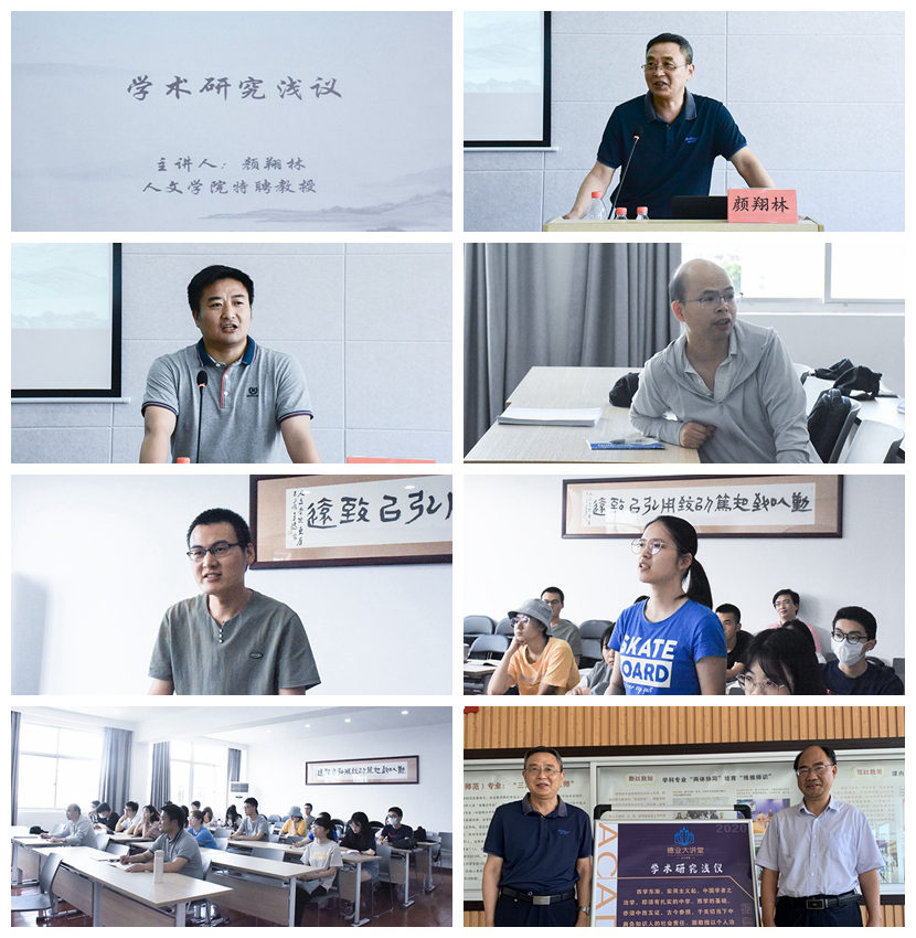 最后,颜教授以自己的亲身经历,提出学者要以自己的研究专业、方向、兴趣开辟三个左右的研究领域,互相渗透,互相启发,互相促进,并形成自己的研究特色。颜教授还将自己多年研究的美学等相关文化的知识进行了分享讲解,针对论文选题,也提出了自己的一些独到的见解。