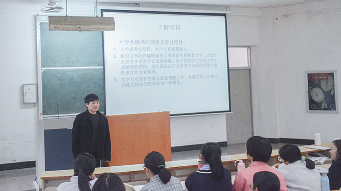 活动伊始,章浩围绕“中文系学子如何运用专业知识促进自我的完善”主题与同学们展开分享。他结合自身的学习经历,强调了运用知识完善自身的重要性,并提醒同学们将精力集中于自身的思维过程。同时,他鼓励大家利用课余时间勇于尝试,积极参加各类比赛,在比赛中磨练自我,增强自身各方面能力。针对中文系学子未来发展道路的问题,章浩提出中文系学生需要充分发挥主观能动性,他表示同学们应主动设定学习目标,了解学科的知识地图,掌握课程的大体结构,做到认同专业的核心精神。
