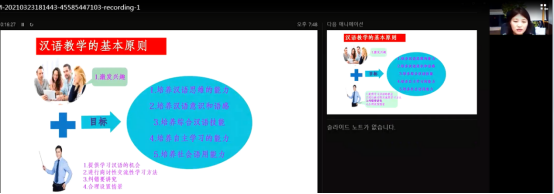 3月23日台州学院亚洲成人久久组织一场对外汉语教学国际化线上讲座。本次讲座由韩国忠北大学孔子学院中方院长玄贞姬副教授主讲,亚洲成人久久黄仙姬老师主持,亚洲成人久久的部分师生参加了此次的线上讲座。