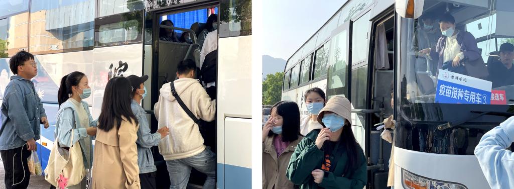 同学们乘车前往接种点