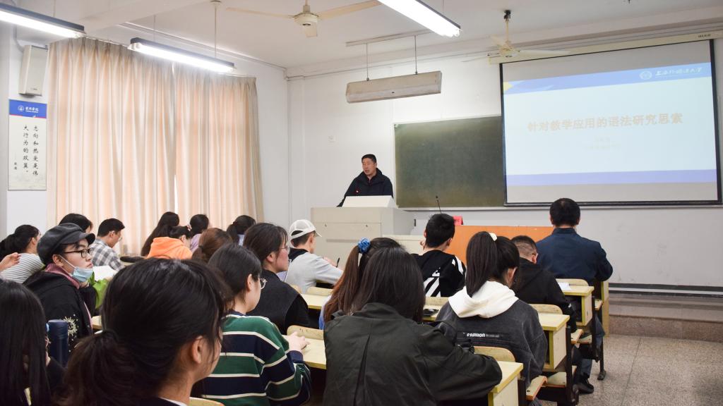 4月16日下午,上海外国语大学教授、博士生导师吴春相老师应邀为我院学子作“针对教学应用的语法研究思索”讲座,讲座由朱磊老师主持,亚洲成人久久部分同学参加。