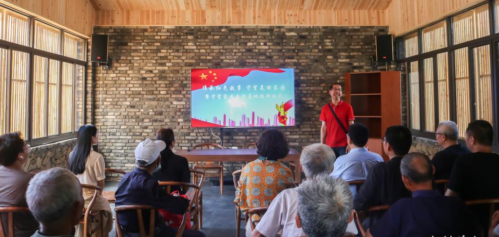 随后,河头镇常务副镇长陈文贤发表讲话,他首先介绍了乡村电影院的由来及建设过程,并对台州学院的大力支持表示感谢。殿前村乡村电影院为最新落成的同心乡村服务基地,同时也是台州学院乡村文化保护传播中心的合作基地,经过策划、设计、建成,形成了校企合作模式。该项目的建设旨在推动乡村传统文化建设,传承红色故事,响应“建设美丽乡村”的号召,更好地为村民服务,使村民获得满足感、幸福感。