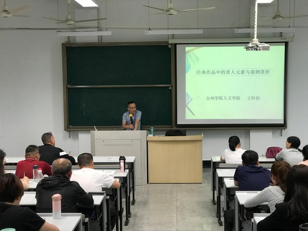 当日下午,省特级教师王针桂为全体学员带来专题讲座——《经典作品中的育人元素与案例分析》,他从语文学科的特质切入,结合《江雪》《红楼梦》《雷雨》等经典作品深入浅出地分析了其中蕴含的育人元素。王老师的讲座风趣幽默,既有理论高度,也有实践指引,学员们纷纷表示受益匪浅。