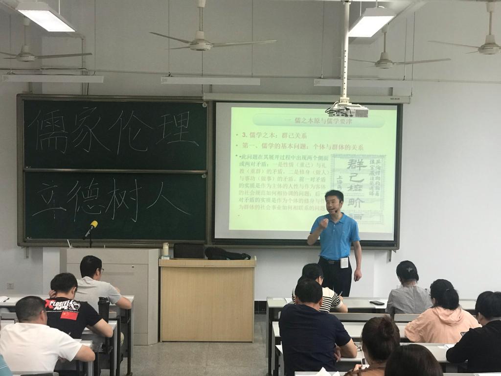 6月5日上午,李建军院长开展题为《儒家文化精神与立德树人》的讲座。李院长先以震撼人心的视频《山河祭》引出了流芳千年的儒家文化,接着从“儒之本原”生发,探赜索隐,展现了渊博的学识与深厚的学养。李院长的讲座分为“儒之本原与儒学要津”“儒之特质与儒学价值”“儒家伦理与立德树人”三个板块,层层深入,并不时结合时代热点予以分析论证。最后,李院长高度凝练地指出,学生对教师的崇敬是始于容仪,感于真挚,敬于才学,终于人品,引发在座教师的阵阵掌声。当日,台州学院中小学教师培训中心领导在巡查后对项目予以肯定性评价:“亚洲成人久久‘精准育人’核心素养提升培训学员到课率高,认真参培。班主任认真负责,制定了一一对应的座位表,这样的做法值得肯定!”